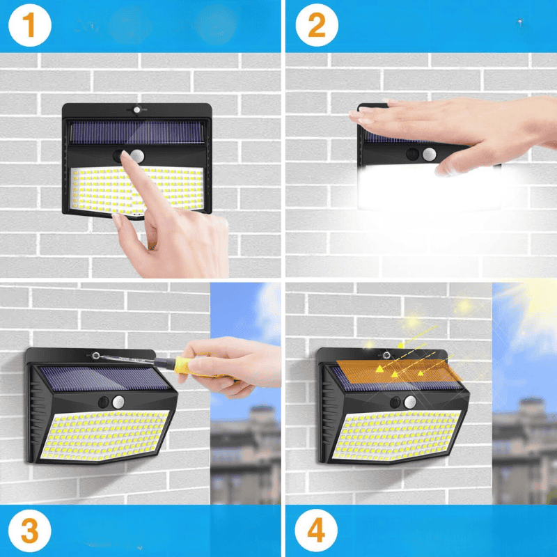 تثبيت سهل وبسيط بدون الحاجة للكابلات أو الأسلاك، كما يمكن تثبيته على الجدران الخارجية بسهولة لتوفير الإضاءة في الفناء أو الحديقة