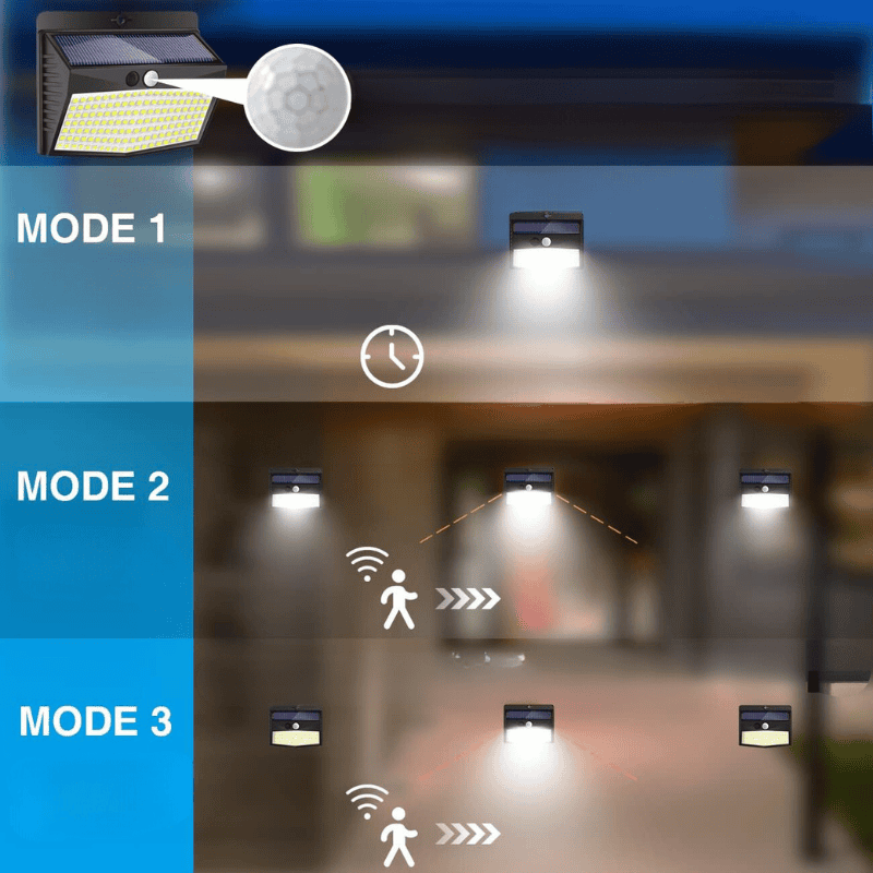 يتضمن حسَّاسًا للحركة لتشغيل الضوء تلقائيًا عند الاقتراب، كما يعمل لساعات طويلة بشحنة واحدة من الطاقة الشمسية